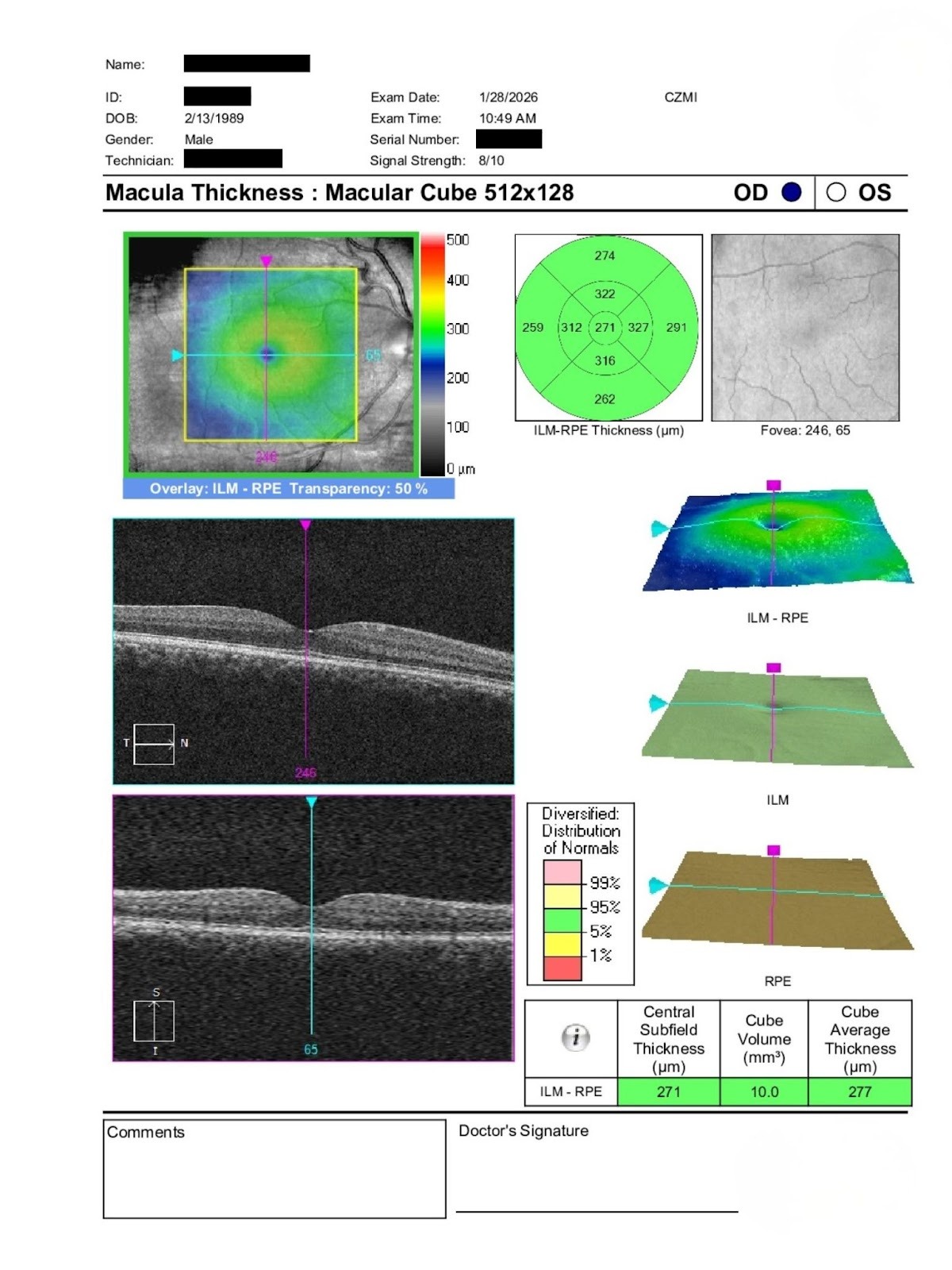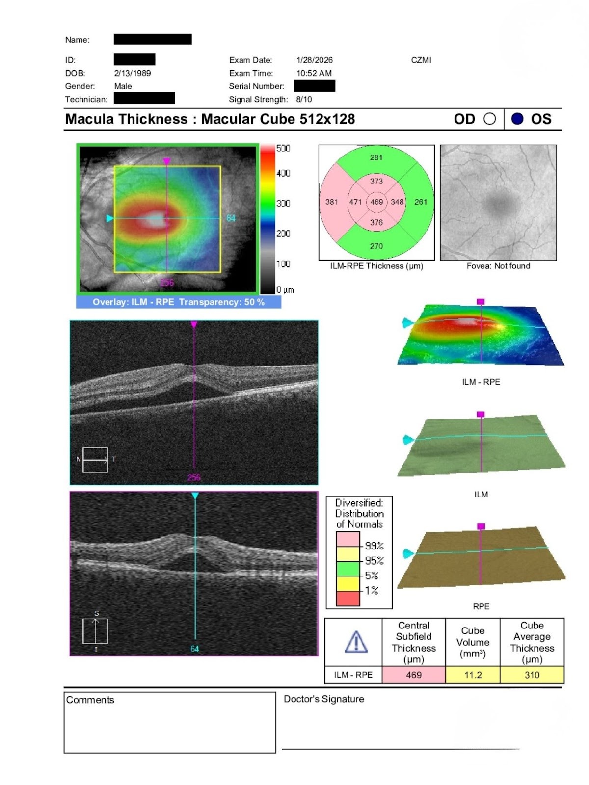 Fundus exam revealed subtle subretinal fluid OD consistent with central serous retinopathy, confirmed on OCT. No other macular pathology was observed. The left eye was normal.