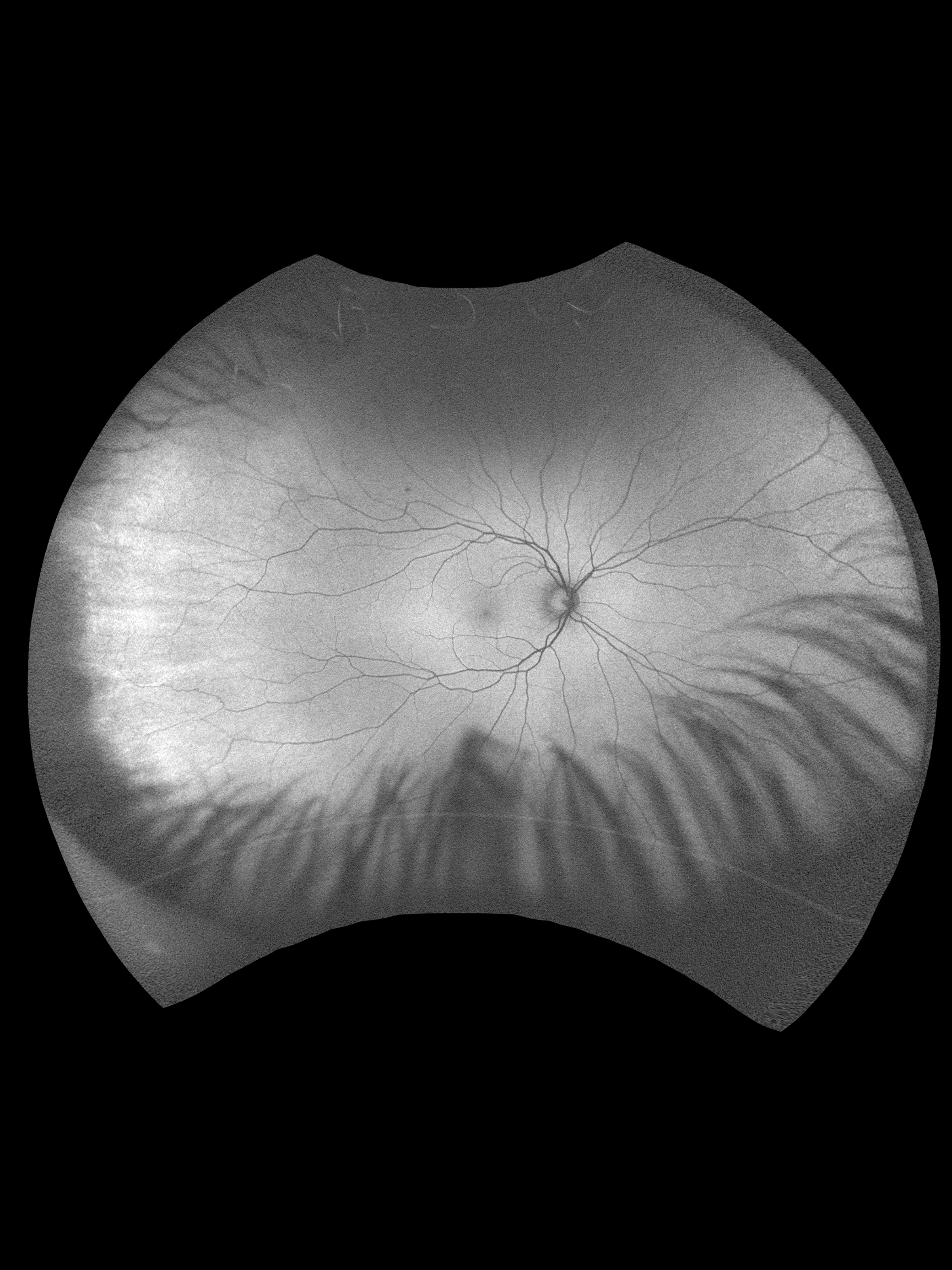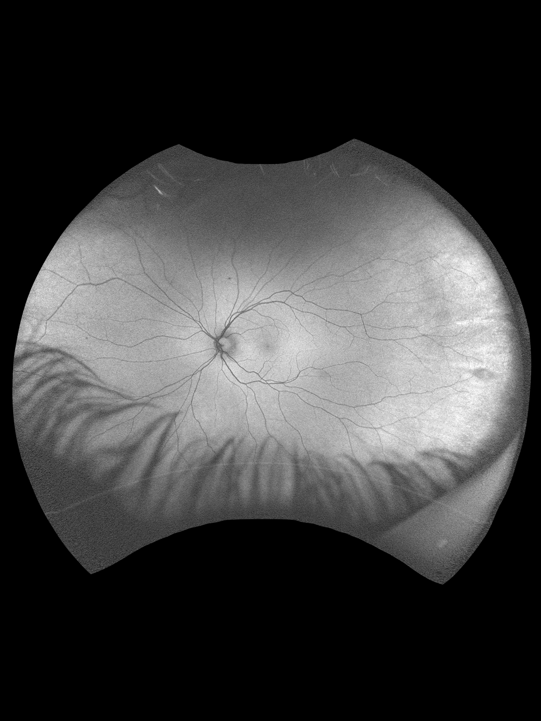 A 37-year-old male was referred for evaluation of a large temporal vitreous tuft OS found during a routine exam. He is asymptomatic with no prior imaging for comparison and a history of LASIK OU. BCVA was not documented. IOPs were 12 mmHg OD and 13 mmHg OS. Anterior segment was largely unremarkable aside from trace blepharitis and mild pigment findings OD. Posterior segment showed healthy discs with C/D ratios of 0.65 OD and 0.60 OS. Peripheral exam revealed a large vitreous tuft with traction at 3 o’clock OS.