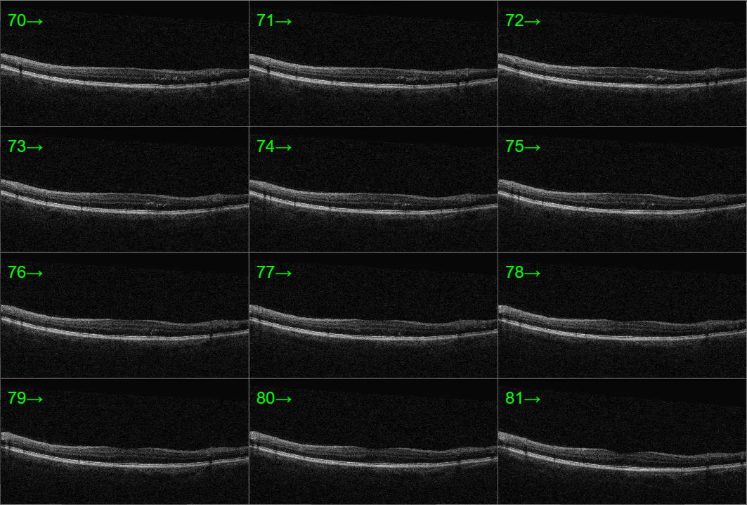 In-office examination showed best-corrected visual acuity of 20/20 in both eyes. Intraocular pressure measurements were not provided. Anterior segment findings were not documented. Posterior segment evaluation with OCT demonstrated minimal cystic changes within the macula of the left eye, raising concern for early or mild macular edema. No abnormal posterior segment findings were noted in the right eye.